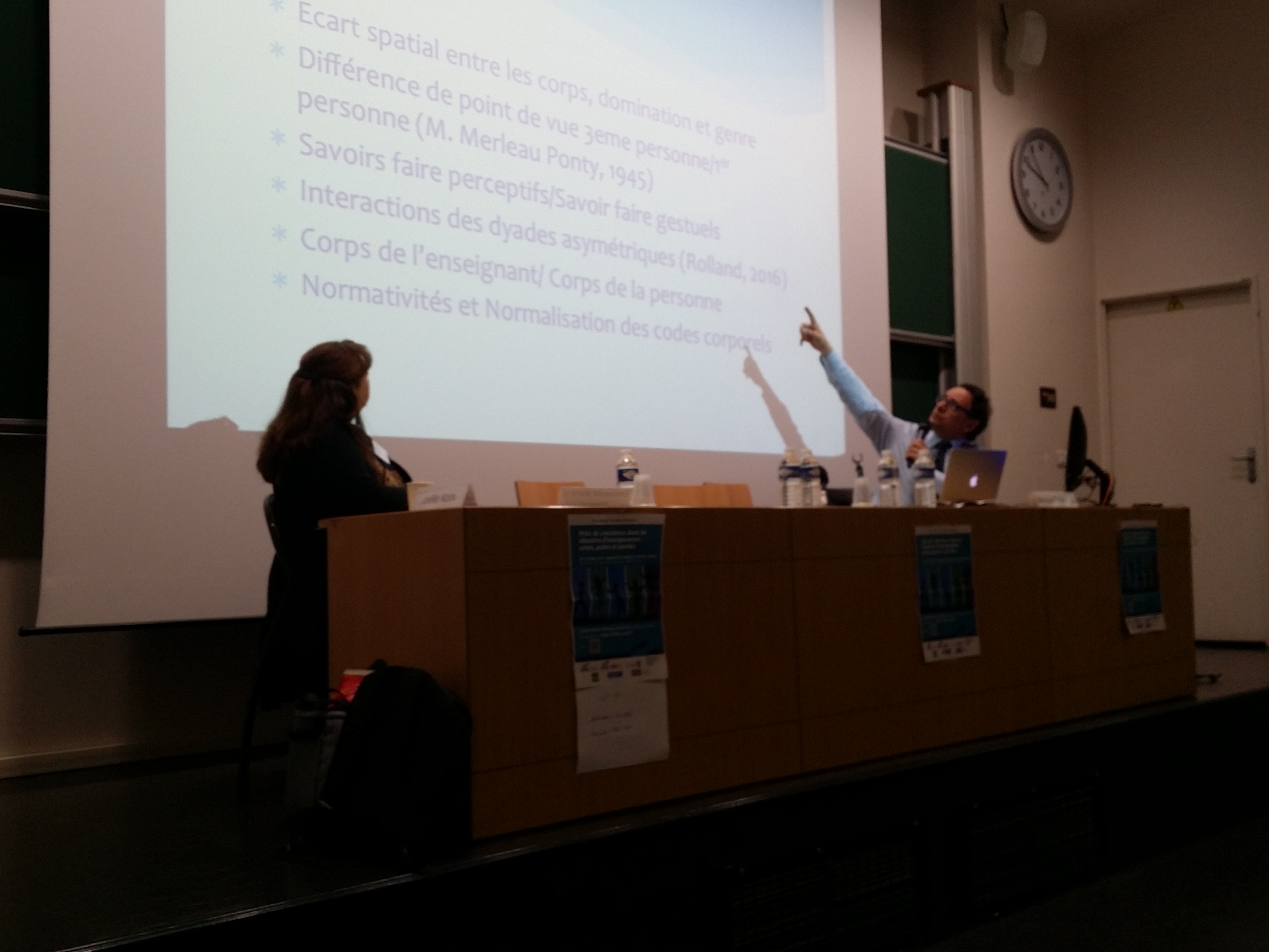 Le corps incarne par ses gestes, postures et attitudes, une façon d'exister dans un contexte professionnel. Ses différents modes d'expression, conscients ou non, sont toujours dialogiques. Fondamentalement culturel, véhicule de sens, d'émotions, de croyances et de valeurs, le geste permet de transmettre des dimensions de soi, d'établir des liens entre les élèves et les savoirs, tout comme il permet de poser des règles d'un contrat de classe. Le langage corporel est articulé de façon indissociable avec le langage verbal. Les éléments extrêmement signifiants (corps, distance, voix) sont de l'ordre du micro perceptible et passent souvent en deçà de nos seuils de perception. De l'ordre de la routine de sens, ils font partie de l'inconscient phénoménologique.