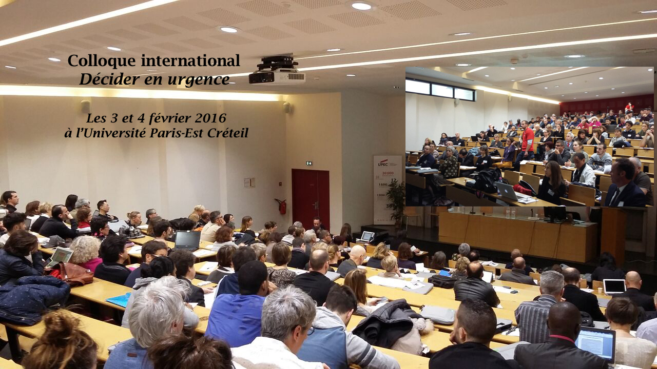 Retour sur le colloque international "Décider en urgence" qui s'est déroulé les 3 et 4 février 2016 à l'Université Paris-Est Créteil.