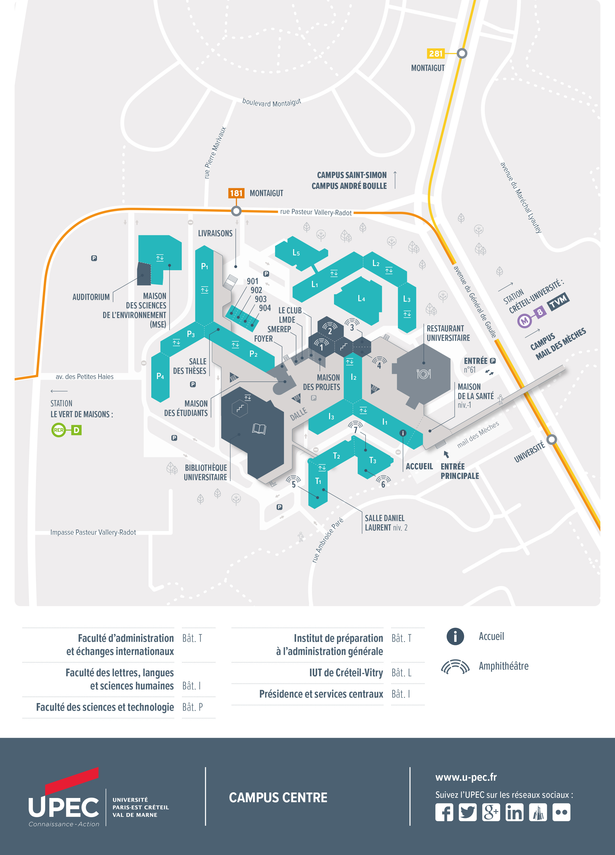 Université Paris-Est Créteil Campus centre Bâtiment i1 - salle 105 61 avenue du Général de Gaulle 91010 Créteil Plan d'accès
